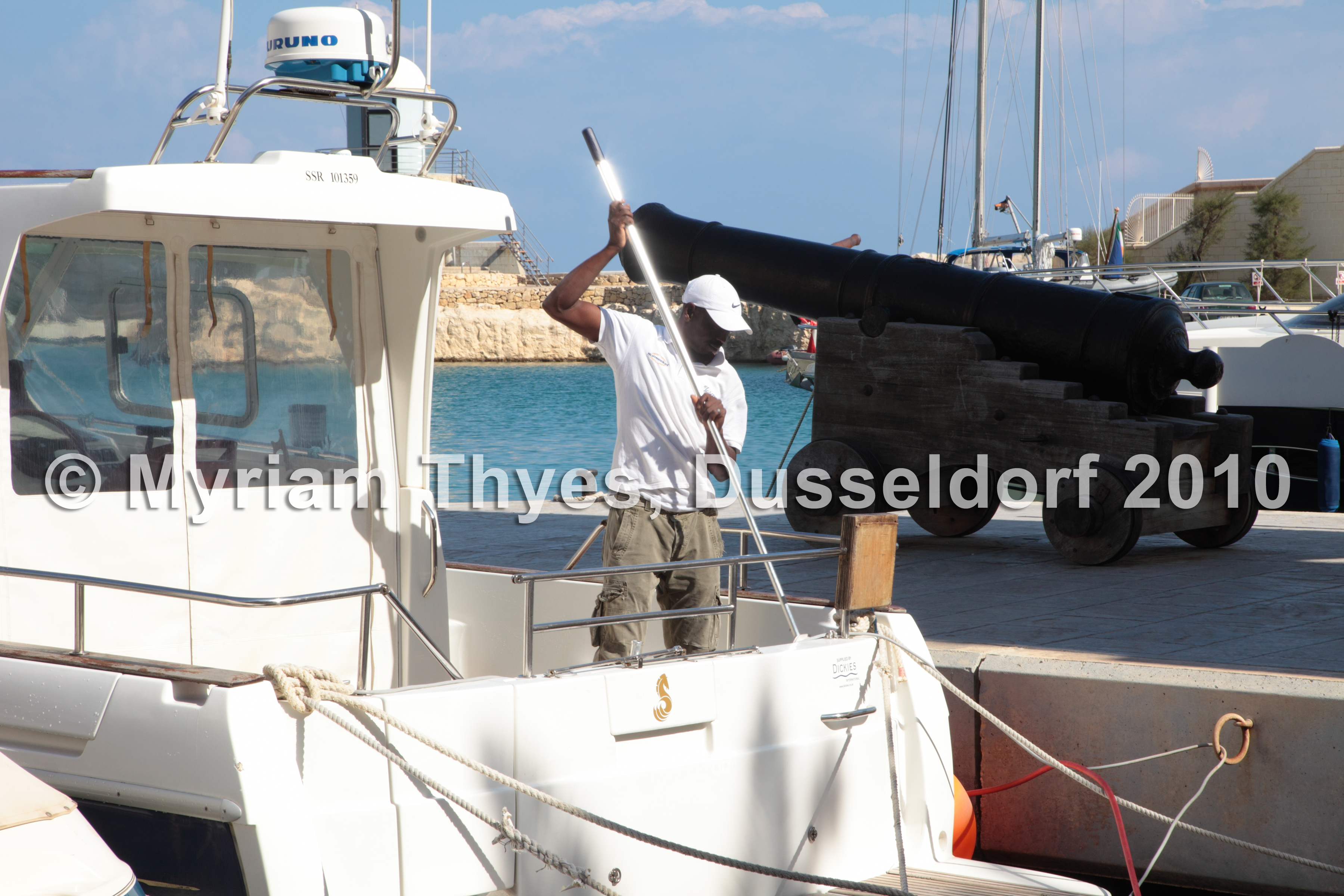 St. Julian's, Hilton hotel, marina, worker on yacht (download image in high res.) (PDF: St. Julian's, Hotels - 6 images)